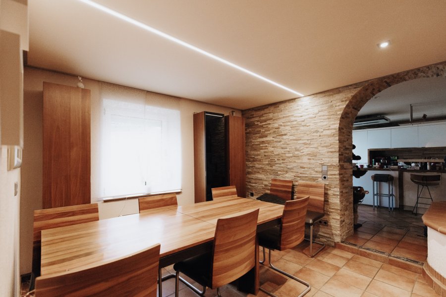 Die Decken wurden erneuert und als moderne Spanndecken mit integrierter Beleuchtung ausgeführt, wodurch die Räume ein einheitliches und gepflegtes Erscheinungsbild erhalten. Zur weiteren Ausstattung zählen Kunststofffenster mit Doppelverglasung, eine Ölzentralheizung (Baujahr ca. 1994) sowie ein im Zuge der Umbaumaßnahmen erneuertes Dach mit Naturschieferdeckung.