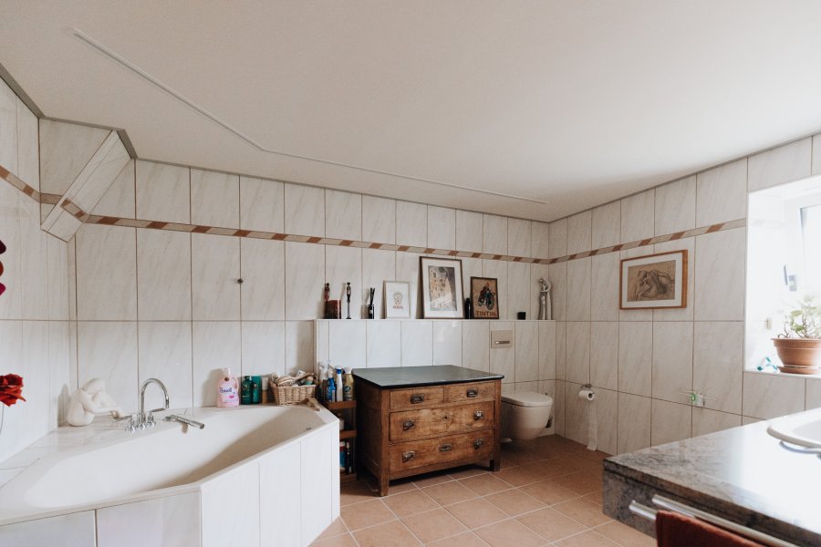 Zum Verkauf steht ein großzügiges Wohnhaus in ruhiger Ortslage von Ernzen im Eifelkreis Bitburg-Prüm. Die Immobilie wurde circa 1946 in massiver Bauweise errichtet und im Jahr 2001 umfassend umgebaut sowie erweitert. Das Haus erstreckt sich über drei Etagen und bietet mit rund 268 m² Wohnfläche vielfältige Nutzungsmöglichkeiten. Ob als Mehrgenerationenhaus, als Einfamilienhaus mit separatem Wohnbereich oder für individuelle Wohnkonzepte mit getrennten Bereichen ? die Raumaufteilung ermöglicht unterschiedliche Nutzungsmöglichkeiten.Das Erdgeschoss verfügt über einen großzügigen Flurbereich mit Zugang zur Garage sowie zum weiteren Innenbereich des Hauses. Eine abgeschlossene Einliegerwohnung ist vorhanden und umfasst ein großes Badezimmer mit bodengleicher Dusche, ein Wohnzimmer, zwei Schlafzimmer sowie eine Küche. Zusätzlich besteht für diese Einheit ein separater Außenzugang über eine eigene Haustür, wodurch sich eine unabhängige Nutzung ermöglicht. Ebenfalls auf dieser Etage befindet sich der Heizungsraum sowie das Treppenhaus, das in das Obergeschoss führt.