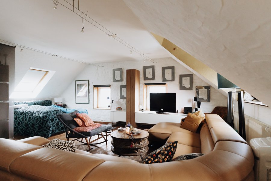 Über eine Treppe erreicht man das Dachgeschoss, das mit seinen hohen Decken und dem schönen Holzboden ein offenes und angenehmes Raumgefühl mit besonderem Charakter schafft. Von diesem Bereich aus besteht ein direkter Zugang zur Dachterrasse. Zusätzlich befindet sich auf dieser Ebene ein großer Wohnraum, ein Badezimmer mit bodengleicher Dusche sowie ein zusätzlicher Dachboden, der weitere Nutzfläche bietet.