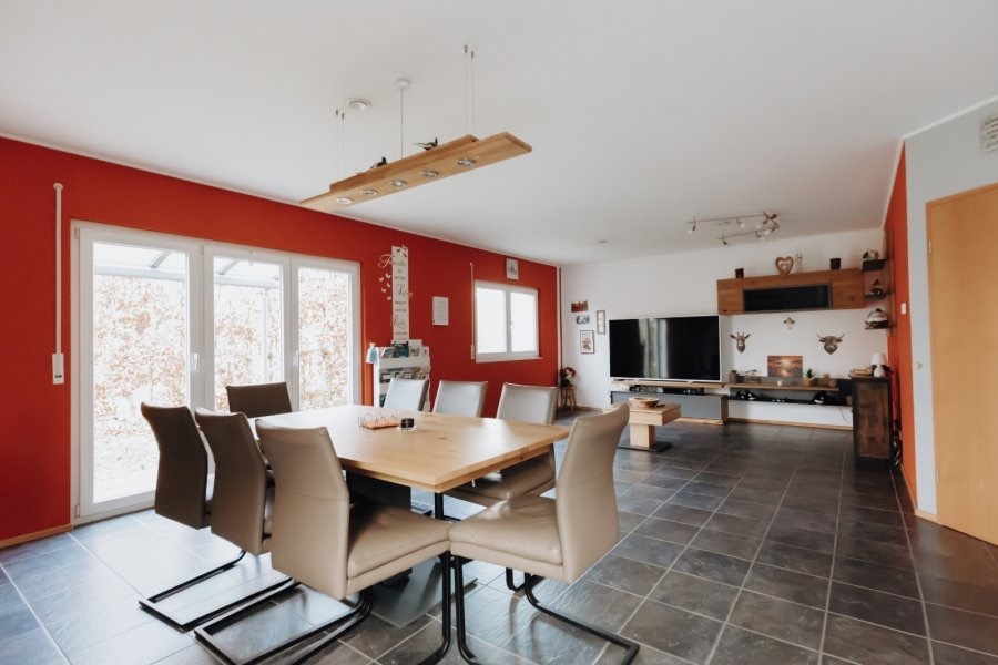Dieses wunderschöne Einfamilienhaus, das im Jahr 2009 erbaut wurde, bietet eine großzügige Wohnfläche von 186 Quadratmetern und ist ideal für Familien, die Wert auf Raum und Komfort legen.Schon beim Betreten des Hauses empfangen Sie ein großzügiger Eingangsbereich mit Ankleide, der einen warmen und einladenden Eindruck hinterlässt. Im Anschluss eröffnet sich der offene Wohn-Ess-Küchenbereich, der viel Licht hereinlässt und sich hervorragend für gesellige Abende mit Familie und Freunden eignet. Von hier aus haben Sie direkten Zugang zu einem einladenden Garten, der weitere Möglichkeiten für Entspannung und Freizeitgestaltung bietet. Die fünf Schlafzimmer bieten zahlreiche Nutzungsmöglichkeiten, sei es für Kinder, Gäste oder als Homeoffice, und tragen zur Flexibilität dieses Hauses bei.